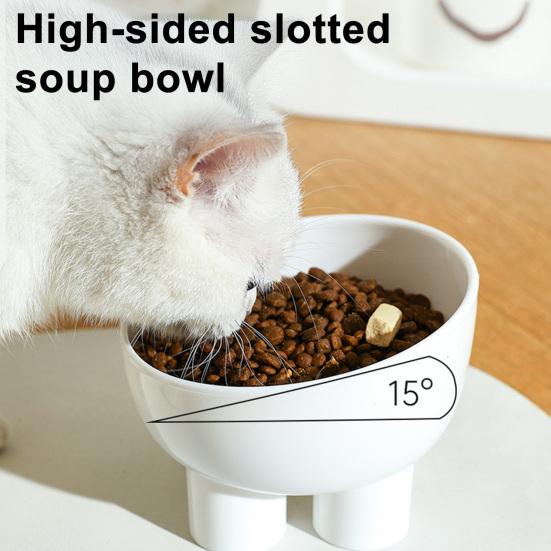 Ergonomic 15° Tilted Elevated Mouth: The bowl's mouth is tilted at a 15° angle and elevated to match the natural eating posture of cats and dogs. This thoughtful design reduces cervical spine pressure, providing a comfortable eating experience that supports long-term spinal health and helps prevent strain during mealtime.
