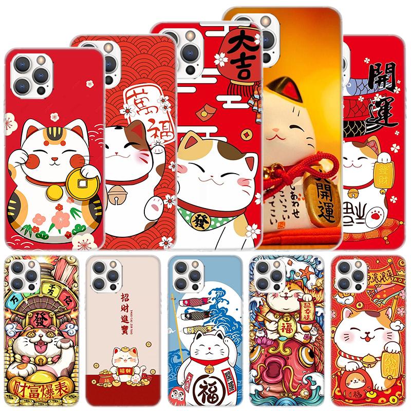 Lucky Cat Maneki Neko Japanese Soft Case For iPhone 16 17 Air 16E 15 Plus 11 12 13 Mini 14 Pro Max Phone Cover Apple 7 8 SE Coqu