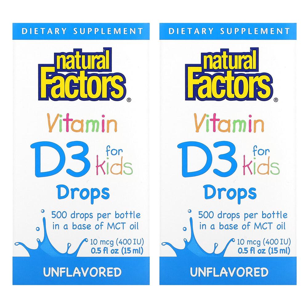 iHerb Natural Factors Children's Vitamin D3 Drops, Unflavored, 10mcg (400 IU), 0.5 fl oz (15ml) - 2 Pack