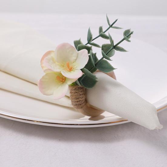 Premium Natural Materials: Crafted from high-quality wooden ring, faux silk flowers, plastic accents, and jute rope, this napkin ring combines durability with rustic charm. The fabric petals feature a delicate texture and lifelike shape, while the eucalyptus leaves offer a natural feel that enhances the overall authenticity and tactile appeal.
