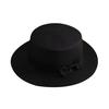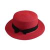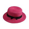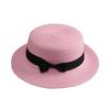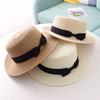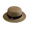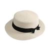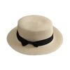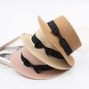 Beach Straw Hat Flat Top Wide Brim Sun Protection Hat with Black Ribbon Bow Hand-Woven Breathable Summer Hat