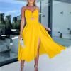 Women's Fashion V-Neck Big Swing Slimming Backless Mid-Length Sleeveless Dresses