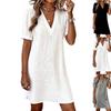 Women's Summer Color V-neck Button Short-sleeved Belt Dress