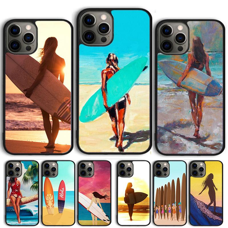 HAWAII BEACH SURF GIRL SURFING ART Phone Case For iPhone 17 Air 14 15 16 13 12 Cover For Apple Pro Max Plus