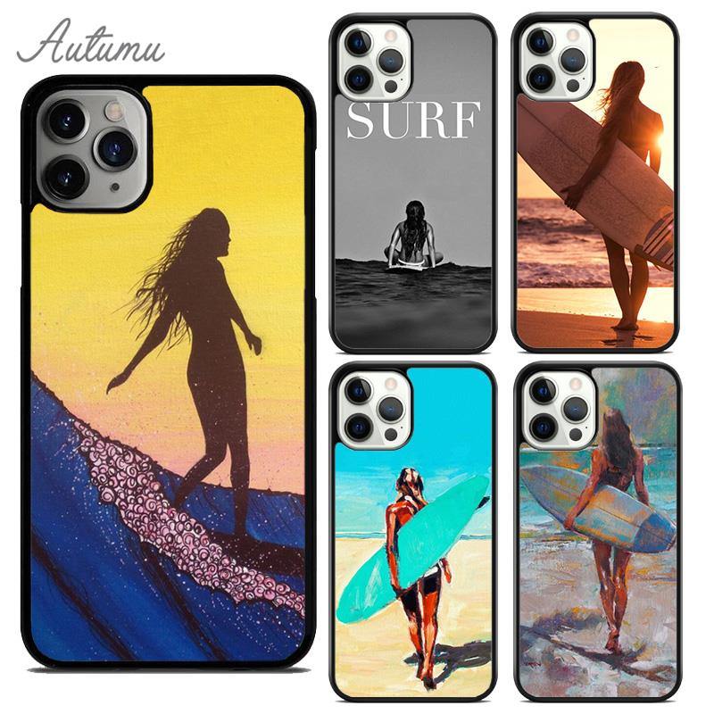 HAWAII BEACH SURF GIRL SURFING ART Phone Case for iPhone 17 Air 15 16 16e 11 12 13 14 Pro Max Plus Cover coque Fundas