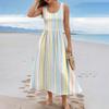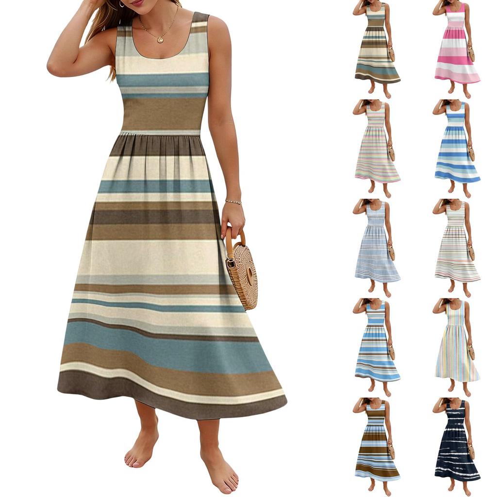 Ladies' striped summer casual and fashionable sleeveless long dress