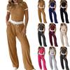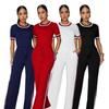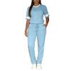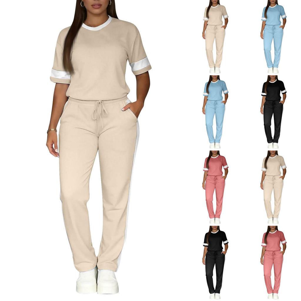 Women's 2-Piece Fashion Casual Short-Sleeve Top And Pants Set With Side Stripes And Color-Blocking