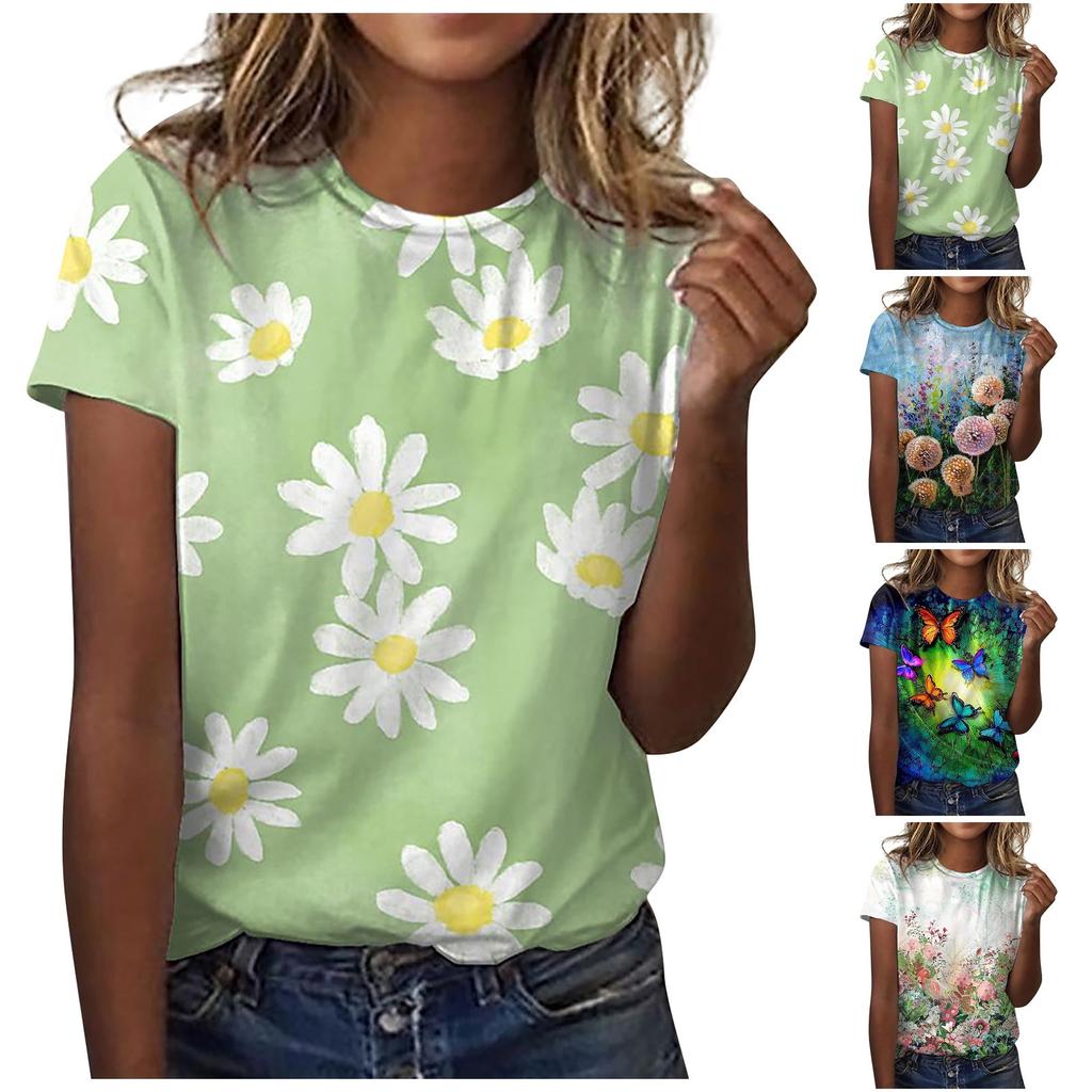 Women's Fashion Large Size Printed Hedging Loose Short Sleeve Tops