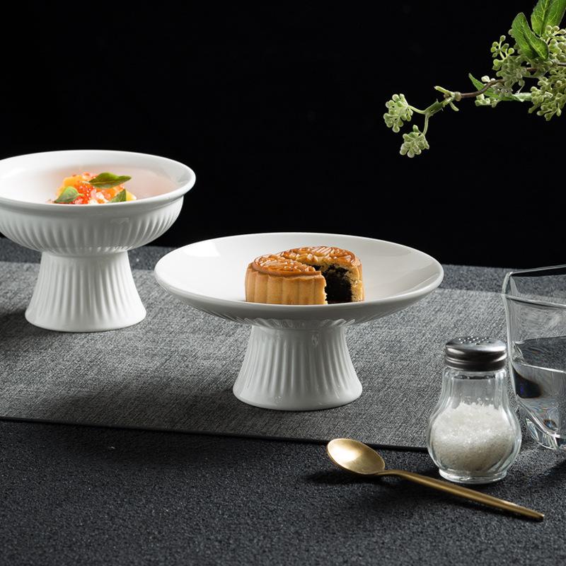 Ceramic Tall Plate, Fruit Plate, Household Snacks, Refreshment Tray, Engagement Table, Pastry Plate, Chinese Dried Fruit Plate, Snack Tray