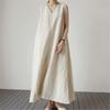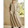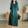 Čisté lněné šaty Umělecký výstřih do V Volné Zeštíhlující Nadměrná velikost Dlouhý bavlněný lněný župan Ležérní šaty