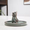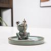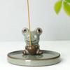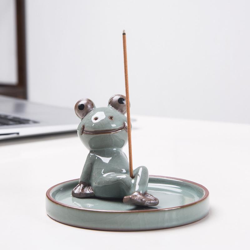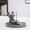 Zen Frog Ceramic Incense Burner and Holder - Ge Kiln Style for Home or Office Decor
