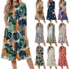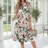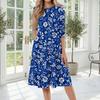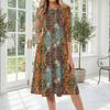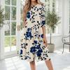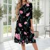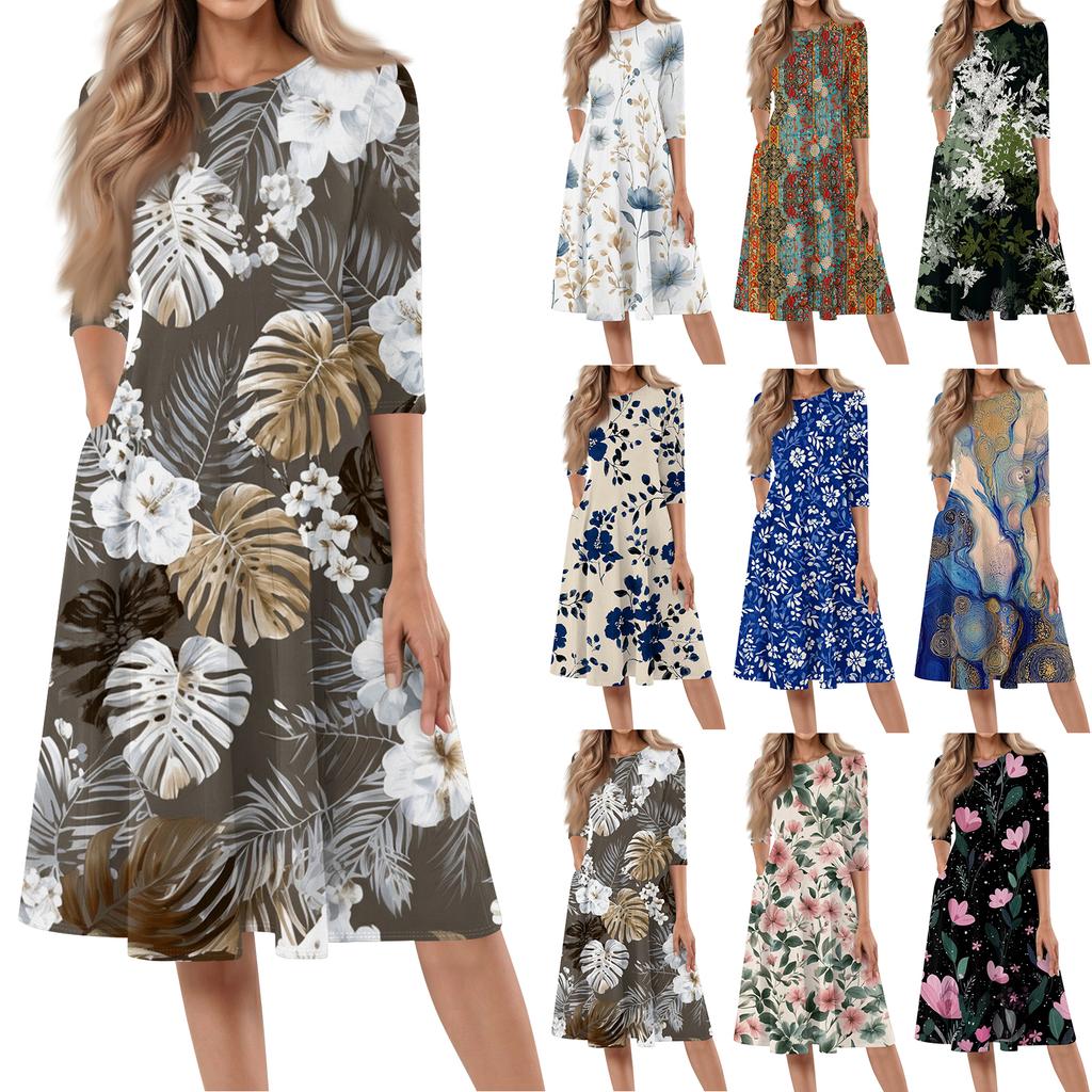 Women's Casual Fashion Round Neck Three Quarter Sleeve Printed Midi Dress