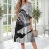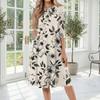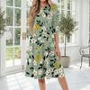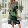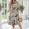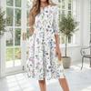 Women's Casual Fashion Round Neck Three Quarter Sleeve Printed Midi Dress