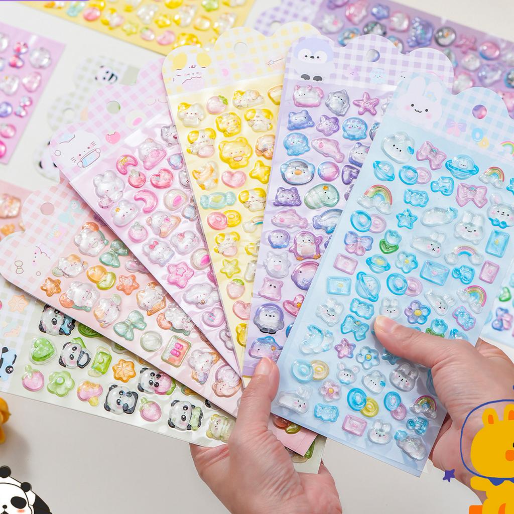 6PCS 3D Crystal Animal Relief Stickers - Sweet Candy Aesthetic Decals Waterproof for Diary Album Phone Case Keyboard Girls Gifts