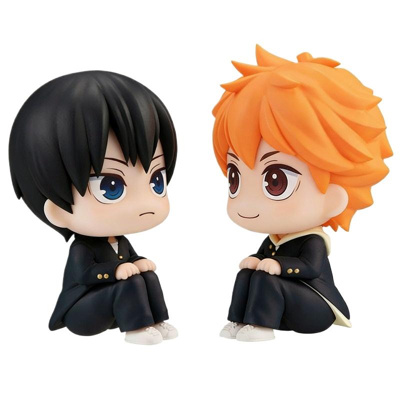 Original Chibi Haikyuu!! Sitting Kageyama & Fluffy Hair Hinata Anime Figure Car Dashboard Decor PC Case Ornament