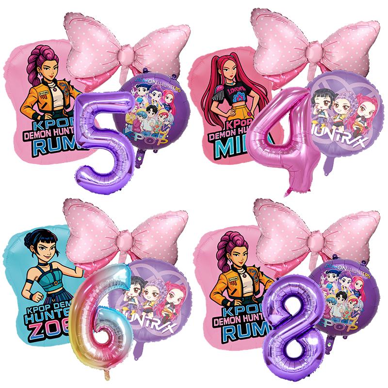 Kpop Demon Hunters Birthday Balloons Decoration Zoey Rumi Mira Girl Party Number Balloons Set Party Favor Home Decor Kids Gift