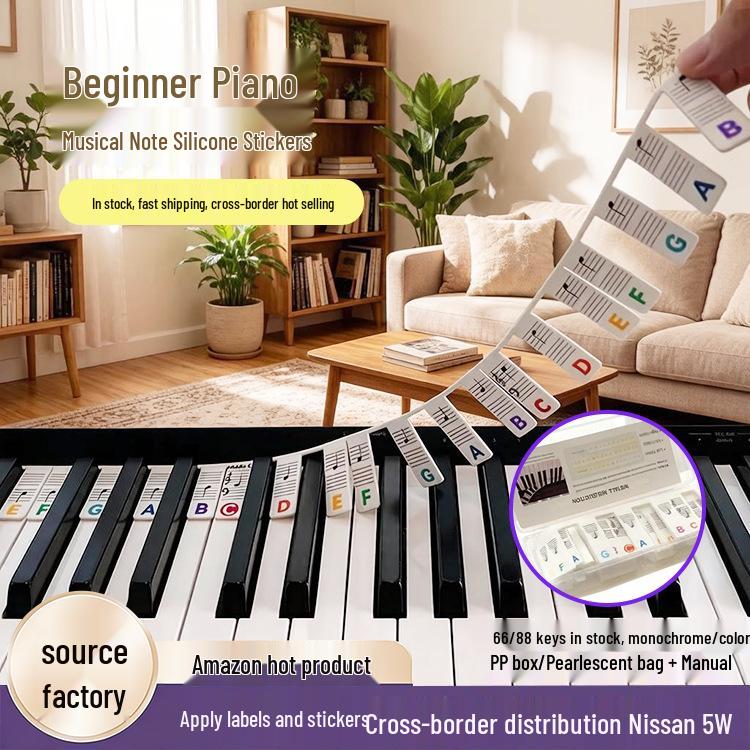 Removable Silicone Piano Note Stickers for Beginners - 88-Key Keyboard Guide