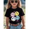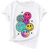 European sizes Summer Fashion Short-Sleeve T-Shirt for Girls Featuring a Checkered Pattern with Heart And Star Eye Cartoon Prints