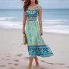 Printed dress seaside beach sleeveless vest long dress women's clothing