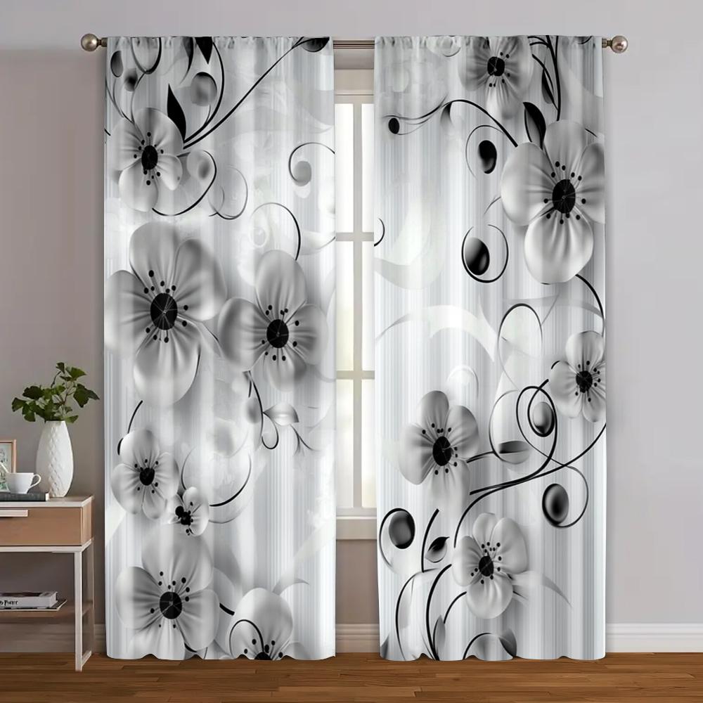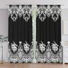 Set Of 2 Bohemian Print Curtains Style Black Floral Durable Polyester Fabric Without Rod Art Deco Festive Perfect Curtain Made