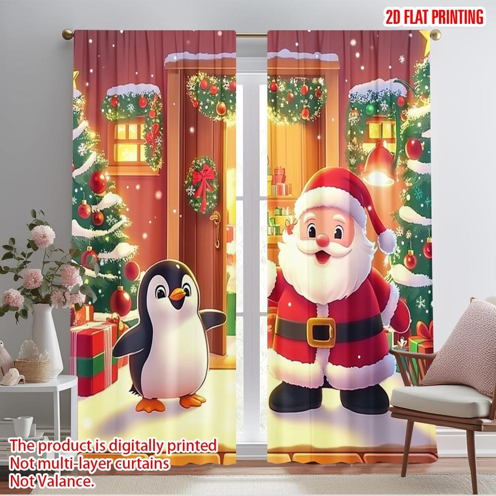 Set Of 2 Plane Printing Curtain Popular Merry Christmas Santa Penguin Door Polyester Woven Without Rod Decorations Outdoor