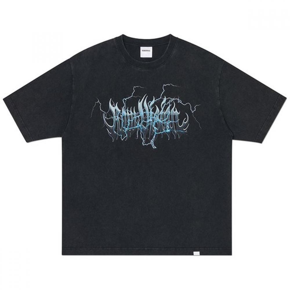 LIGHTNING RAW VISION T-SHIRT - WASHED BLACK is made of high-quality 40S 2-PLY cotton fabric, featuring a sophisticated washed finish that provides a unique feel. It emphasizes comfortable wear and a natural silhouette, allowing for versatile styling in everyday situations. This T-shirt adds a casual touch along with urban sensibility.