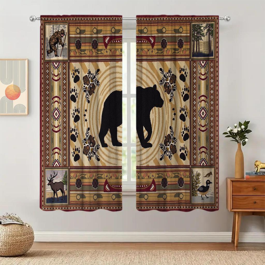 Panels American Country Bear Patterned Curtains Versatile Design Suitable Any Style Creating Peaceful Living Space Curtain Made Of Polyester Washable