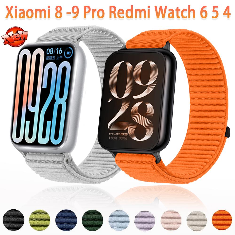 Sports Nylon Braided Loop Band for Xiaomi Mi Band 9 Pro 8 Pro Metal Head Breathable Bracelet Correa Redmi Watch 6 5 4 Wristband