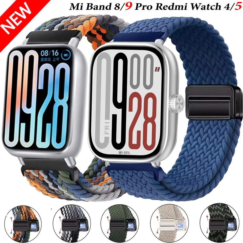 Nylon Strap for Xiaomi Band 8 Pro/9 Pro Braided Loop Magnetic Buckle Breathable Adjustable Wristband for Redmi Watch 6/5/4 Belt