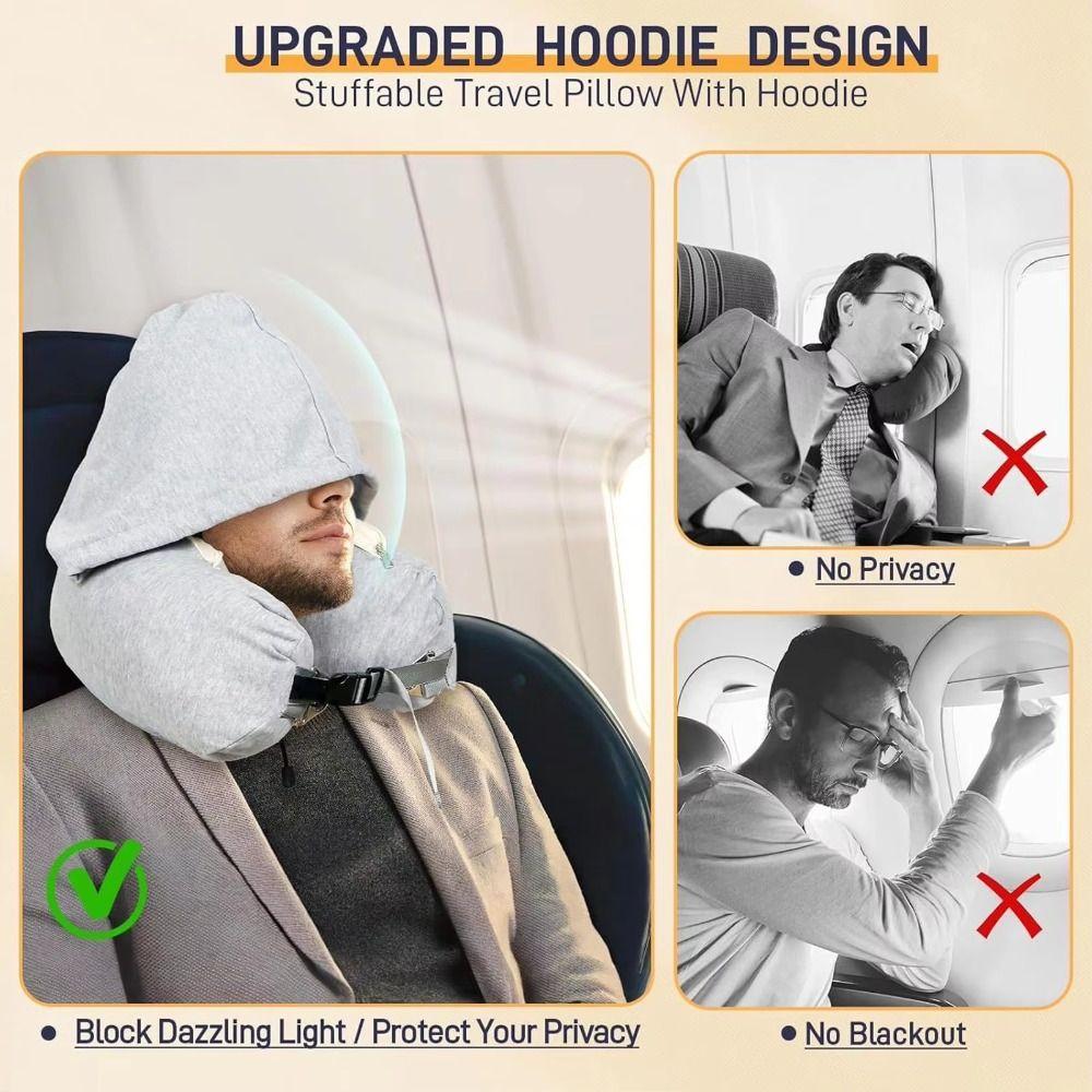 Fillable Travel Neck Pillow Neck Support Light-blocking Airplane Neck Pillow Adjustable with Storage Pouch