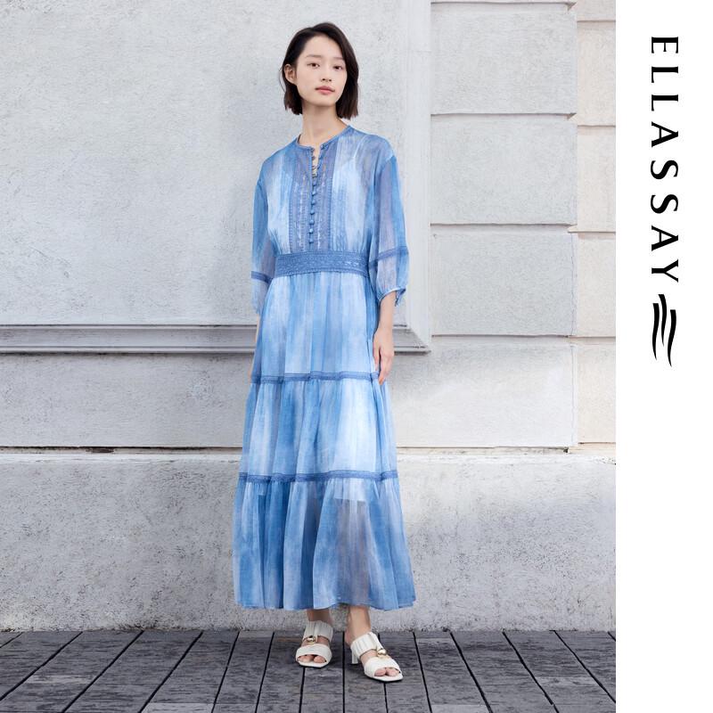 ELLASSAY 2026 Summer Gradient Tie-Dye Lace Midi Dress