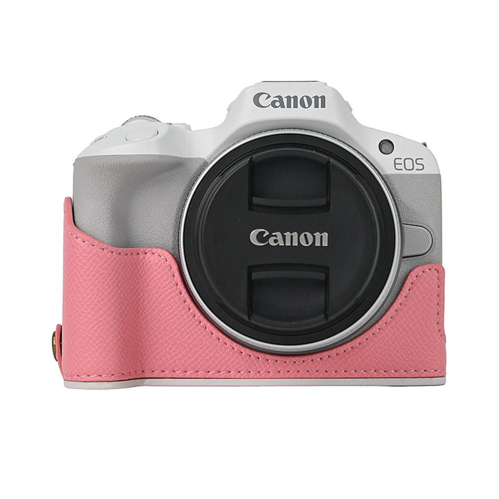Palm Print PU Leather Camera Half Case For Canon EOS R50 R10 R8 Battery Opening Bottom Cover With Hand Strap