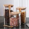 Zásobníky na potraviny s vzduotěsným víkem, Průhledná skleněná dóza, Kuchyňská spížní skladovací nádoba na těstoviny, cukr, mouku, ovesné vločky, cereálie, fazole