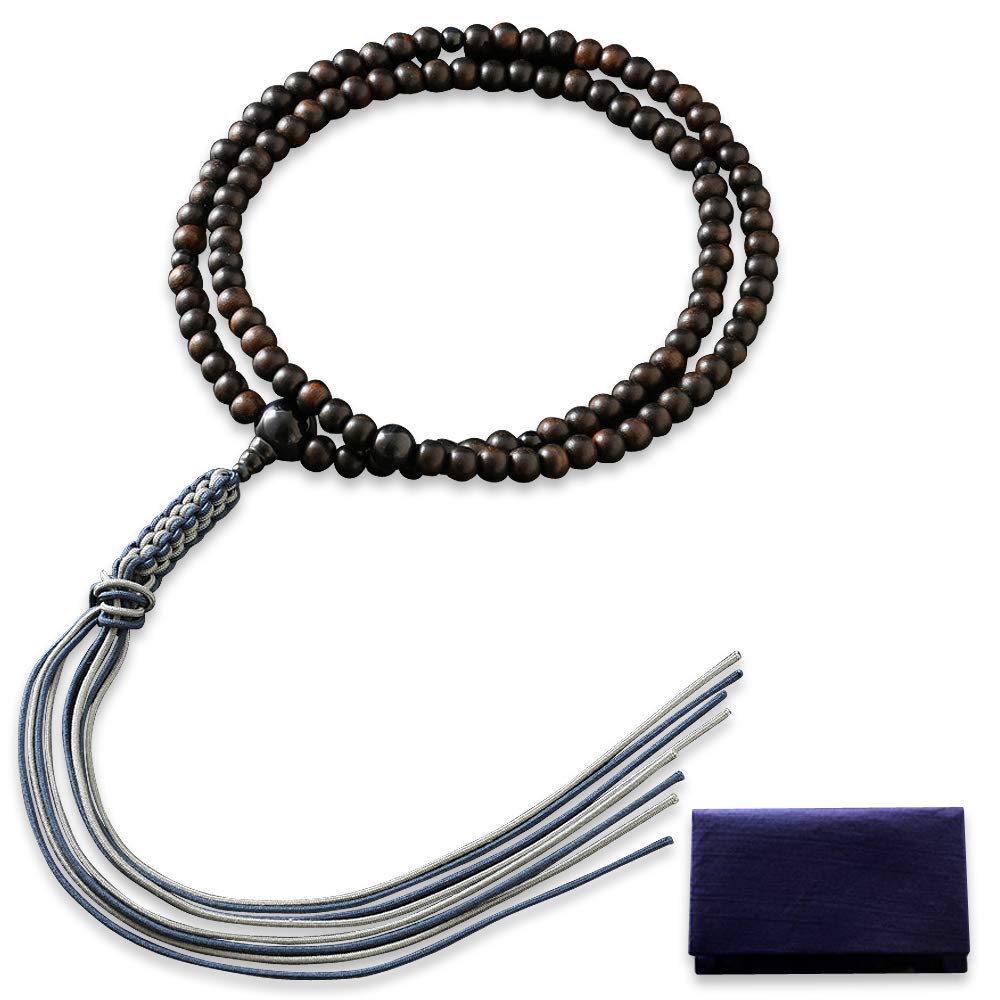 This is a formal men's rosary for the Rinzai sect, combining unpolished ebony beads with our most popular blue tiger's eye beads. The unpolished beads, which retain the natural texture of the wood, will become more comfortable to the touch and develop a deeper color with use. The blue tiger's eye is a stone with a deep indigo color and faint stripes, possessing a mystical shimmer, and is said to enhance concentration, career luck, and financial luck, leading to success. The tassel is a cord tassel woven from eight strands by a master craftsman of Kyoto rosary making. It is finished simply in iron navy blue and gray. This is an exquisite item that has been meticulously handcrafted by a rosary craftsman in Kyoto. It will be delivered in a high-quality paulownia wood box.
