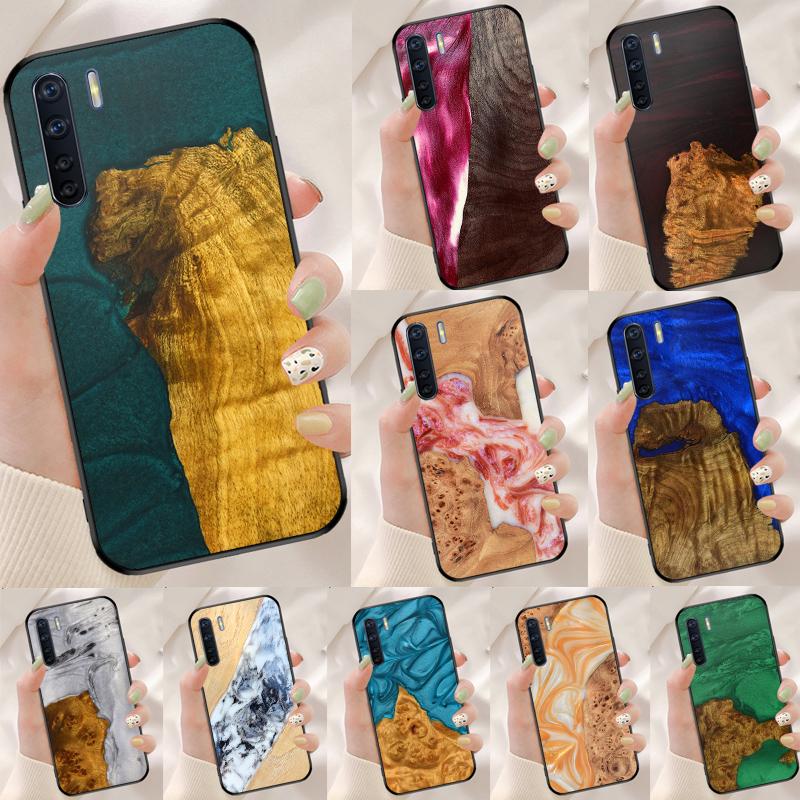 Resin Wood Case For Oppo A40 A60 A80 A18 A38 A58 A78 A98 A16 A76 A96 A15 A17 A77 A74 A94 A54 A57S Cover