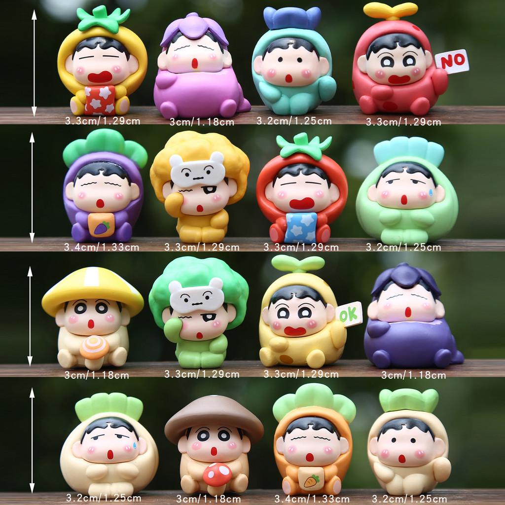 16pcs Crayon Shin Chan Fruit Shape Design Model Ornament Set For Kids And Teens