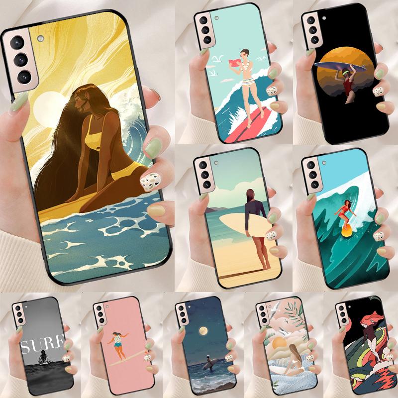 Surfboard Surfing Surf Girl Funda Case For Samsung Galaxy S25 Ultra S9 S10 S20 S22 Plus S21 FE S23 S24 Ultra Phone Cover