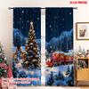 Set Of 2 Flat Printing Merry Christmas Party Curtains European Architecture Versatile Fabric Without Electricity Festive Made Polyester