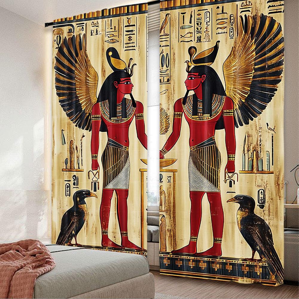 Egyptian Deity Print Curtain Room Decor Versatile Use Suitable Living Dining Bedroom Bathroom Office Curtains Set Of 2 Made Polyester Area