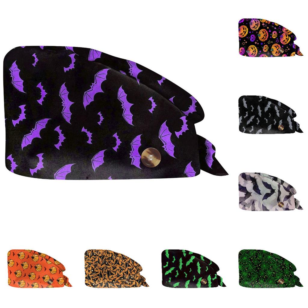 Halloween Print Nursing Scrub Caps for Women Men Doctors Nurse Hats Cotton Comfortable Sanitary Sport Cycling Chef Skull Caps