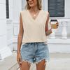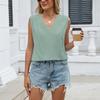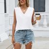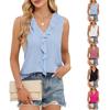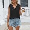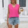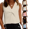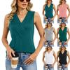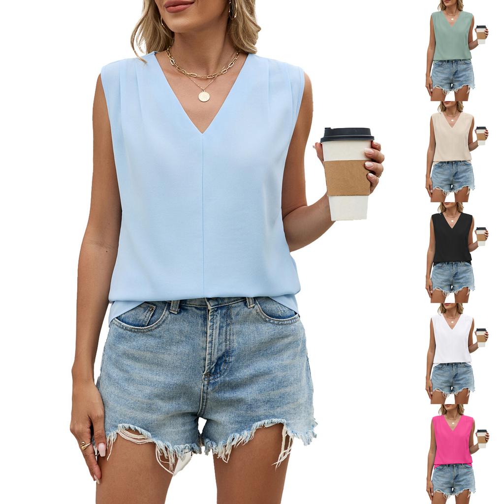 Women's Fashionable Summer Color Shirt Loose V-neck Pleated Sleeveless Vest Top