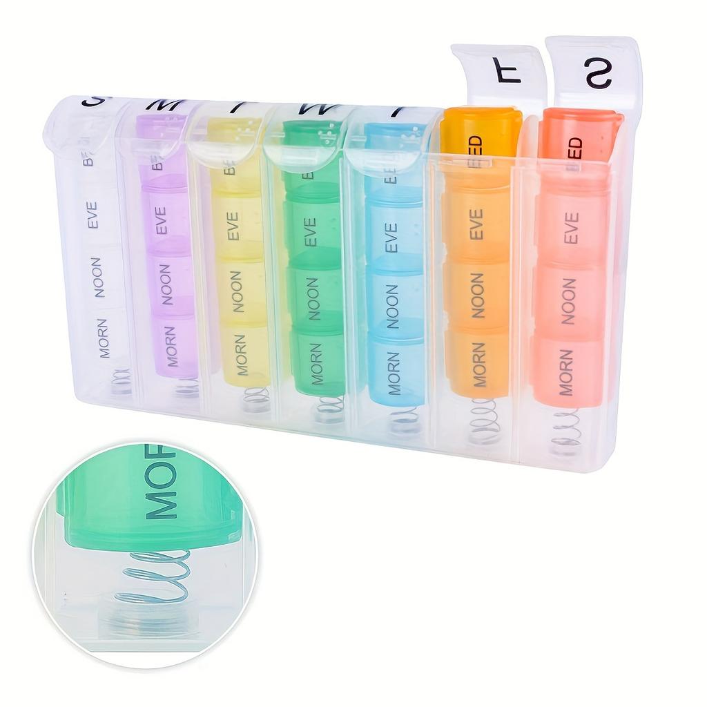 Weekly Rainbow Pill Box 28 Grids 4 Times A Day Portable Pill Organizer Spring Assisted Easy to Open for Vitamins and Supplements