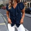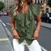 Módní dámská šifonová košile s véčkovým výstřihem, volánky a krátkým rukávem, dámská letní top s temperamentem pro dojíždění, barevný