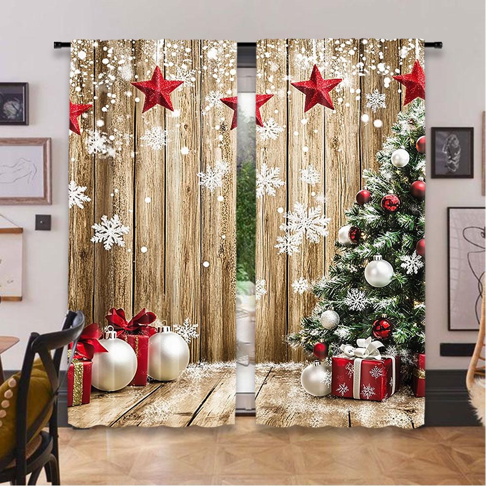Rustic Christmas Curtains Snow Tree Gifts Party Decoration Suitable Bedroom Living Room Dining Set Of 2 Made Polyester Sitting Decor