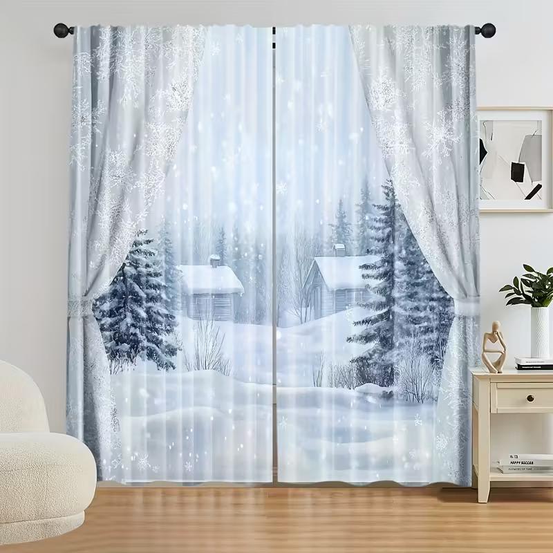 Set Of 2 Snowflake Winter Cabin Curtains Sheer Polyester Christmas Holiday Cozy Window Decor Living Room Bedroom Curtain With Perfect For Area