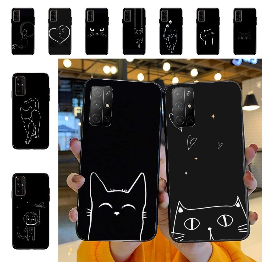 Cute Cat Line Phone Case For Huawei Honor 10 lite 9 20 7A 9X 30 50 60 70 pro plus Soft Silicone Cover
