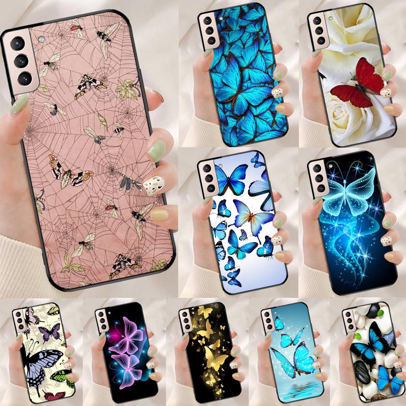 Luxury Blue Butterfly Butterflies Funda Case For Samsung Galaxy S25 Ultra S9 S10 S20 S21 FE S22 S23 Plus S24 Ultra Phone Cover