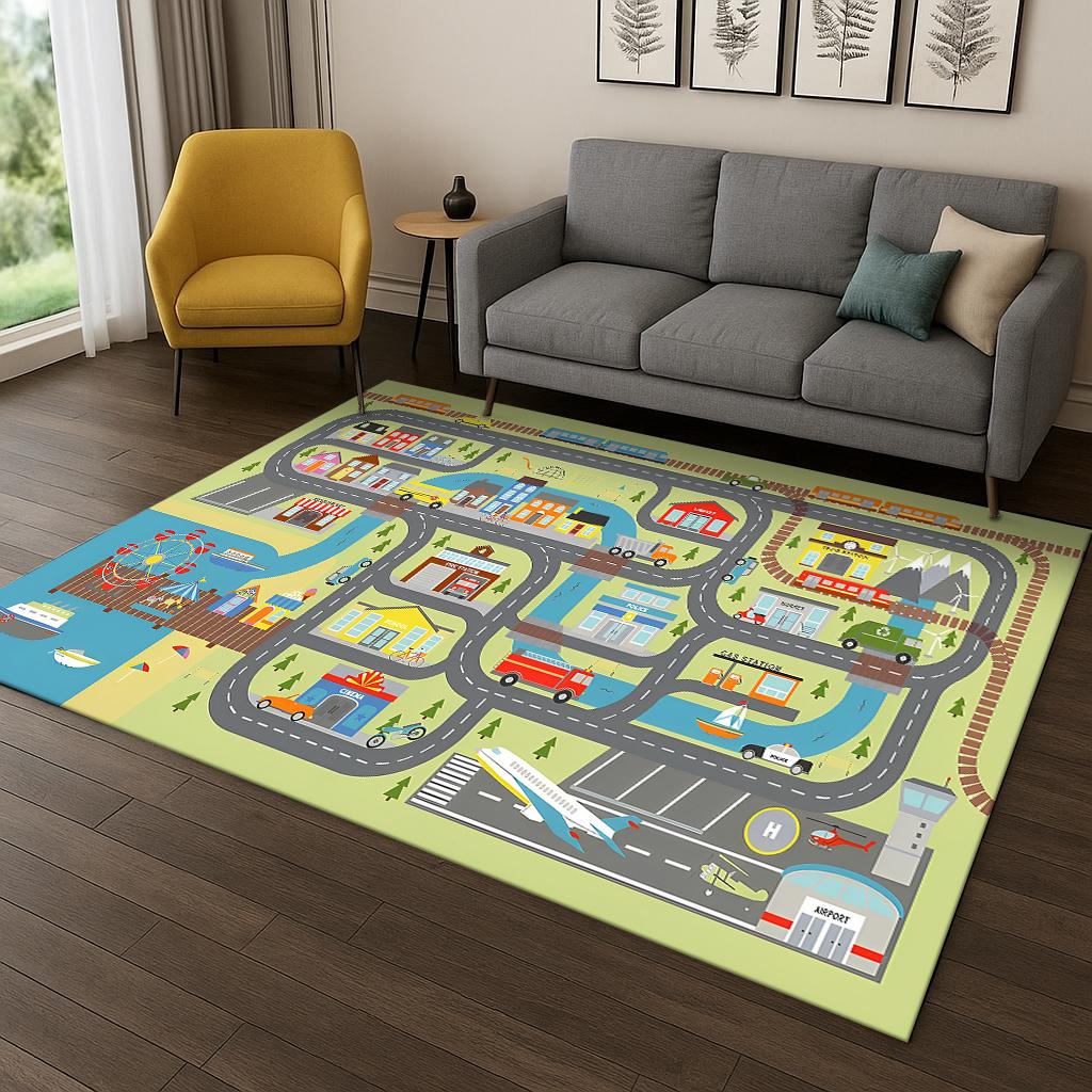 Child Playmat Highway Simulated City Traffic Carpet Rug for Bedroom Living Room Sofa Doormat Decor,Kid Game Non-slip Floor Mat