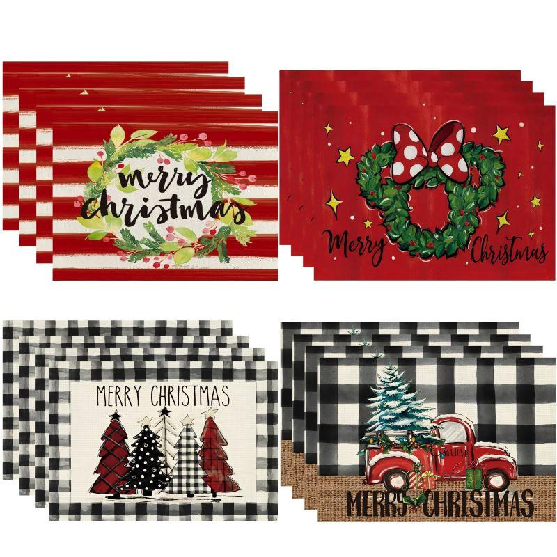 Buffalo Plaid Merry Christmas Placemats Heat Insulation Stain-Resistant Square Linen Table Mats for Dining Table Decoration