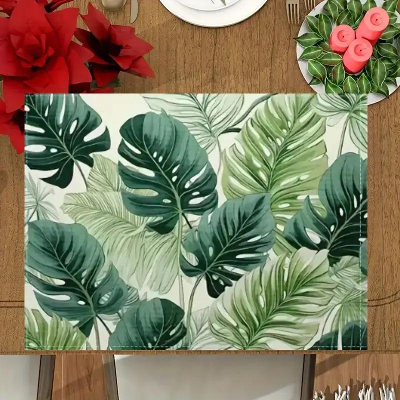 Placemats Linen Green Leaves Summer Series Table Pads Washable Table Mats Family Table Decorations Room Decor